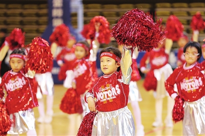 12月30日,太原理工大学附属小学开展以“骐骥踏春到 童心贺岁来”为主题的迎元旦表彰和啦啦操展示活动。图为二年级学生啦啦操展示。 王韵菲 摄