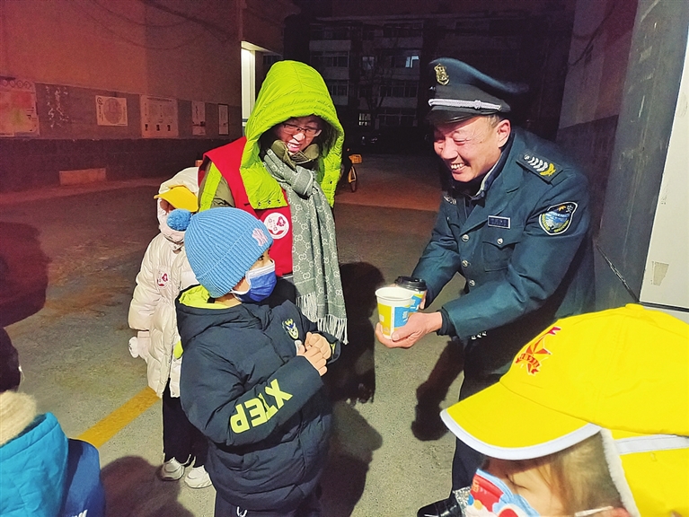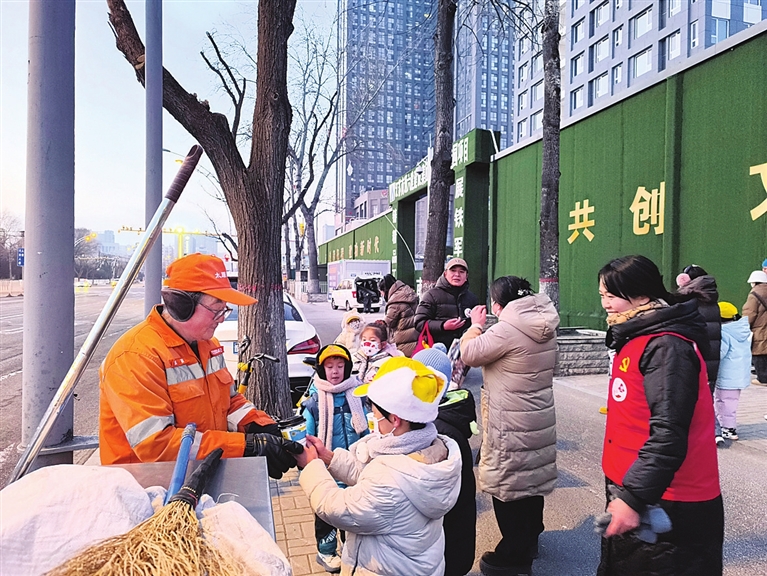 “叔叔阿姨辛苦了,新年快乐!”1月1日清晨6时,迎泽街道解放南路一社区联合大南关小学发起“一杯姜茶温暖一座城”爱心活动,大家将亲手熬制的热姜茶,送给在严寒中坚守岗位的一线劳动者,传递新年第一份温暖与敬意。