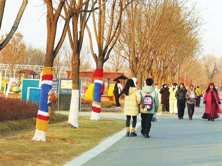 前段时间,迎泽公园邀请艺术达人树洞作画,活灵活现的松鼠、猫咪、猴子、熊猫等图案,深受游客欢迎。受此启发,太原植物园邀请心灵手巧的编织达人,给园区数百棵树木“量身定制”了一批毛衣、棉帽。1月3日,记者在现场看到,每一件“衣帽”都称得上一份艺术品,彩色卡通图案栩栩如生,仿佛将一个个充满童趣的梦幻世界呈现在眼前,让人瞬间找回那份纯真的快乐。有的游客与穿上“新衣”的树木合影,用镜头定格这温暖又美好的瞬间;有的游客漫步林间,细细品味冬日园林别样的魅力,感受大自然与艺术完美融合的韵味。
