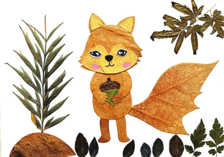 快乐的小松鼠(树叶画) 后小河小学 一年五班 毛翊泽