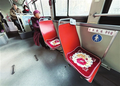 1月5日,省城19路公交车上,新增了一批厚实柔软的坐垫,为乘客带来了冬日里的暖意。 邓寅明 摄
