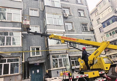 家中管道漏水,加上天气寒冷,导致七府坟南街苗圃小区4号楼一住户阳台外形成冰凌外挂,锋利尖锐。网格员在日常巡查中发现后,随即联动物业调用专业工程车紧急清除,及时化解悬在居民头顶的隐患。韩睿 摄