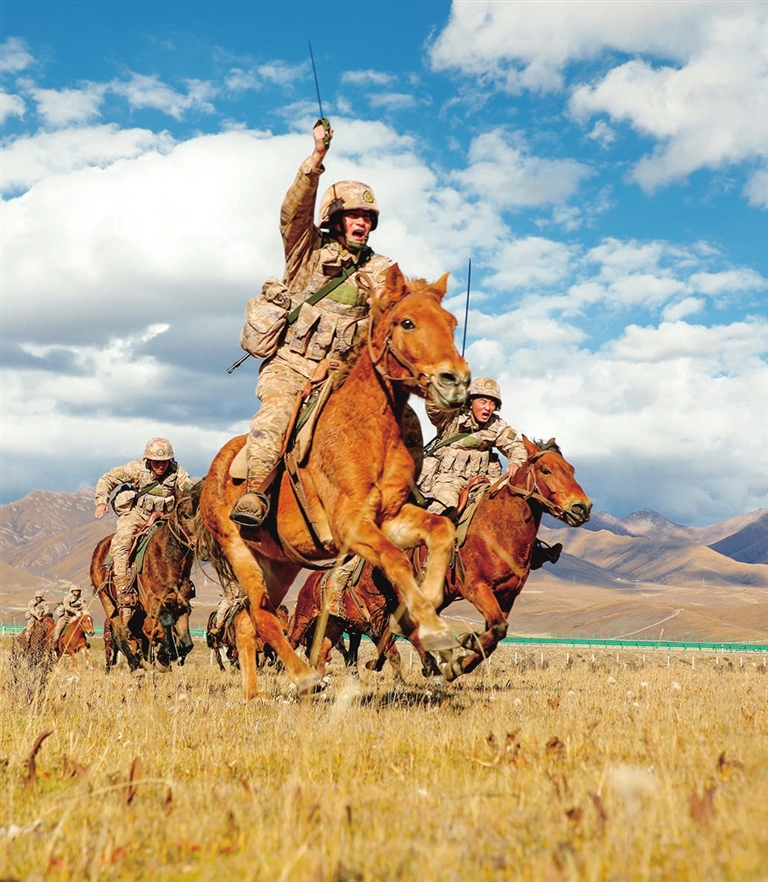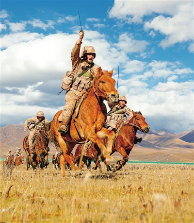 1月4日,陆军第76集团军某旅玉树独立骑兵连官兵进行追捕课目训练。