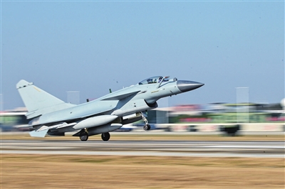 1月5日,东部战区空军航空兵某部组织实战化飞行训练,飞行员驾驶战机加力起飞。