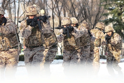 1月4日,武警第一机动总队某支队组织官兵开展战术训练。