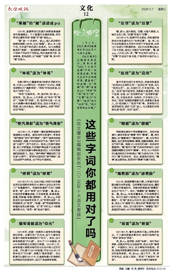 《咬文嚼字》编辑部发布“二〇二五年十大语文差错”~~~