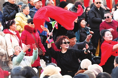 1月8日,市民在迎泽大街月老广场载歌载舞,展现寒冬中的生活热情。 邓寅明 摄