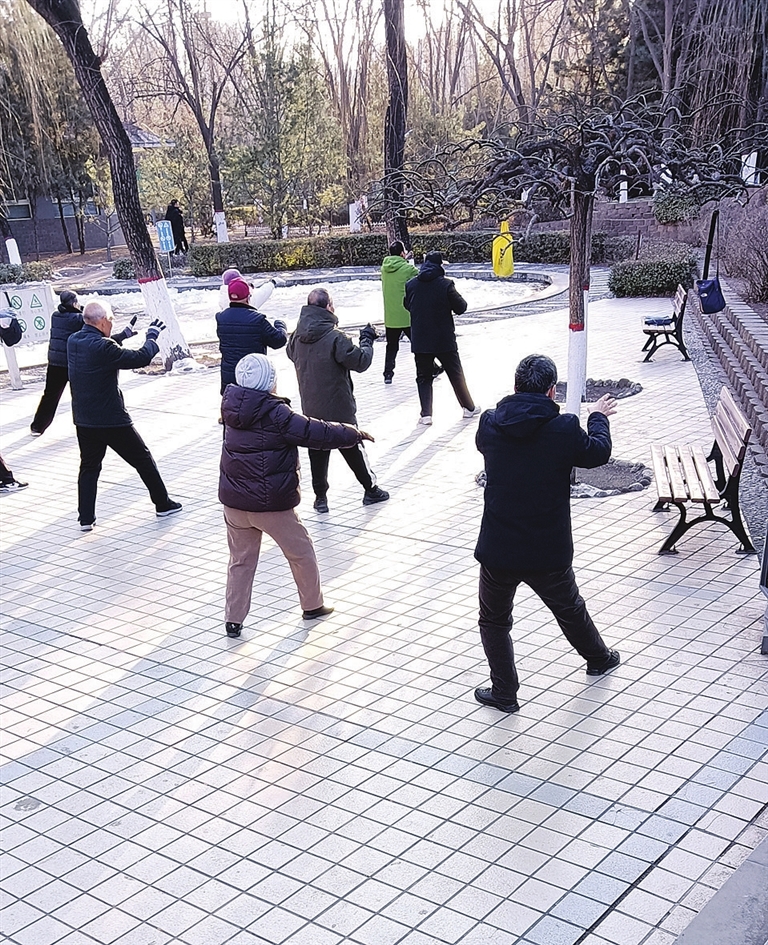 “三九四九,一年中最冷的时候到了,我们也要操练起来,舒筋健骨,锻炼身体!”市民赵先生一边健步走一边说。
