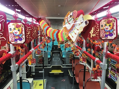 “车身上的太原风景看着亲切,车厢里的新年装饰更是暖心!”1月12日上午,市民王女士登上56路公交,一眼就被车厢里的布置吸引——车尾的2026数字旁,两匹昂首骏马栩栩如生,寓意“马到成功”;红色底衬的金色“福”字圆球灯环绕四周,把福气洒向车厢的每个角落;车窗上,马年主题装饰画搭配吉祥祝福语,令人眼前一亮。