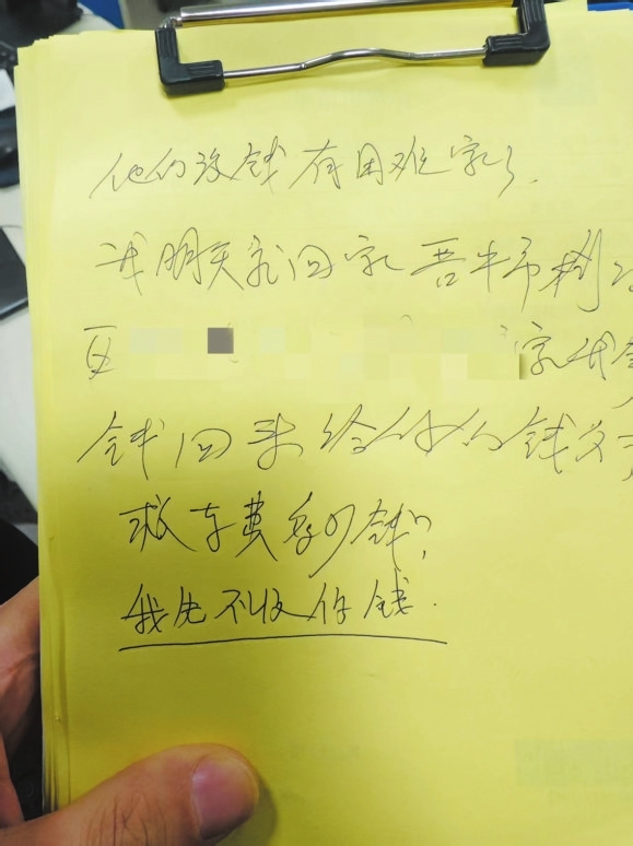这些字歪斜却沉重。闫星接过笔,郑重回应:“先不收钱,赶紧救治。”