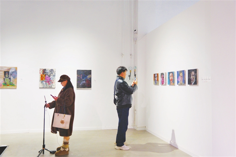 1月13日,观众在位于杏花岭区的“在”美术馆欣赏“认真地对一面墙说话”艺术展。本次展览展出两位艺术家的40余件作品,以“墙”为载体,为观众提供一场兼具哲学思辨与视觉体验的艺术对话。 王韵菲 摄