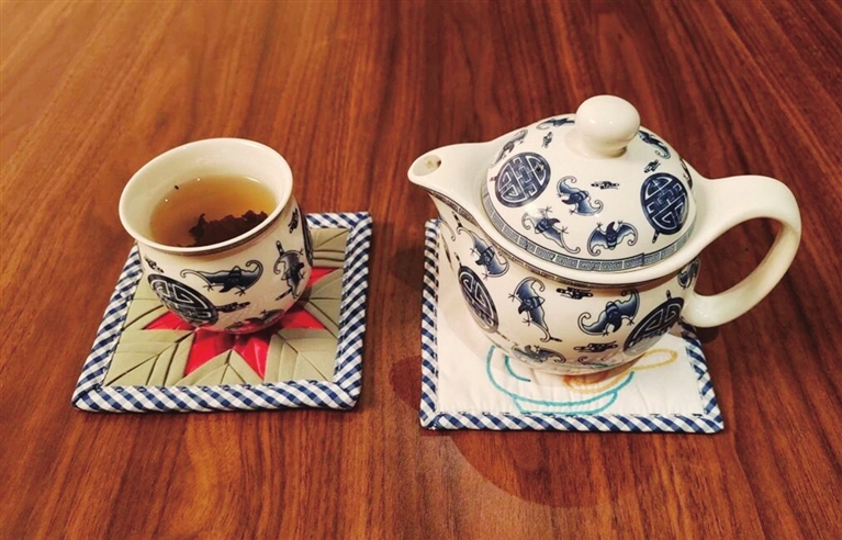 午饭前,杯垫包边完工。蓝白细格子布条包裹着彩色拼布,边角圆润,线迹整齐,放在桌子中央,刚好托住温热的茶杯,边缘服帖地对着木纹,连杯底的热气都似被温柔接住。指尖摩挲着平整的边缘,满心欢喜。这些曾要被丢弃的碎布,竟在一针一线间焕发新生,一如平凡的日子,因用心经营而温暖舒心。