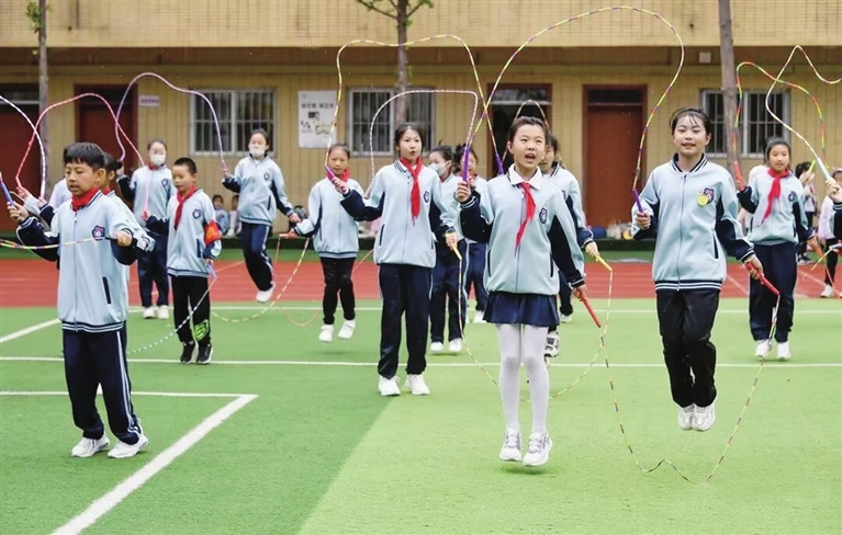 在桃南小学,跳绳是一项起步早、成就高、体系完善的传统体育特色项目。