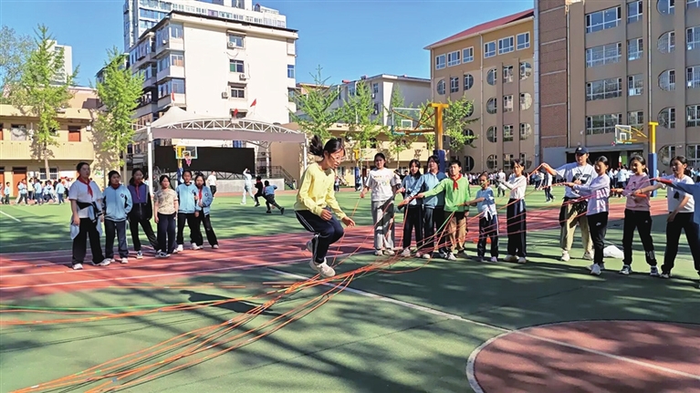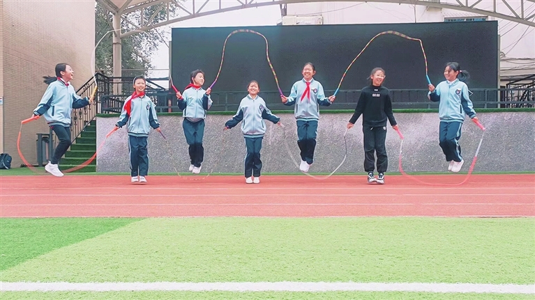自2019年起,学校将跳绳引入体育教学,明确要求体育课“课课练”,学生须随身携带跳绳,每节课至少安排5分钟基础训练。在普及的基础上,学校通过校内比赛进行分层选拔,从速度、动作质量和稳定性等方面综合评估学生表现,组建专项训练队。“选人不是看一两次成绩,而是综合考察孩子的协调性、力量、爆发力和学习能力。”崔海龙介绍。