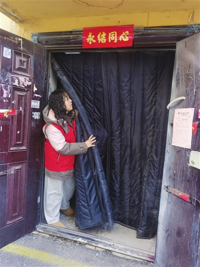 住在一层的朱女士说:“楼道门开开合合,楼道全是冷风,现在安上了棉门帘,楼道里暖和多了。”社区工作人员也在业主群发出提醒,大家进出时,随手将门帘放下,关闭单元门。