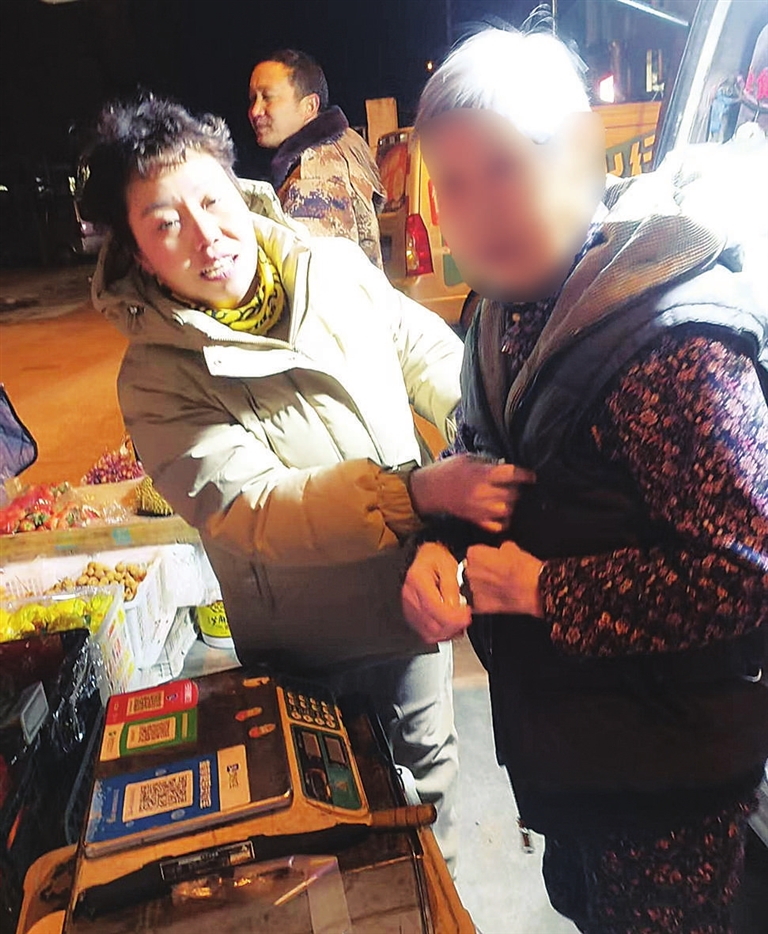 当晚10时,网格员陈英接到辖区兴安南街路口水果摊主王师傅来电称,他准备收摊时,发现一位衣着单薄的高龄老人在寒风中不断徘徊,时坐时站,表情迷茫,应该是迷路了,自己上前询问,对方也说不清家在哪里。担心老人在寒夜里冻着再出啥意外,王师傅请社区帮忙。