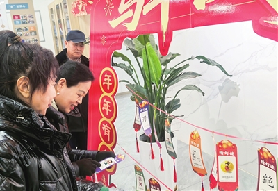民俗体验区聚集了众多书法爱好者。书法达人现场挥毫,墨香四溢,满载吉祥寓意的“福”字与春联相继完成。居民们或凝神欣赏,或亲手提笔体验。