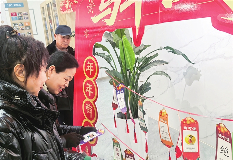 趣味游戏区同样热闹非凡,踢毽子、猜灯谜等传统游戏吸引老幼居民踊跃参与。现场欢呼声、掌声阵阵,成功通关的居民手持新春小礼品,脸上洋溢着喜悦。
