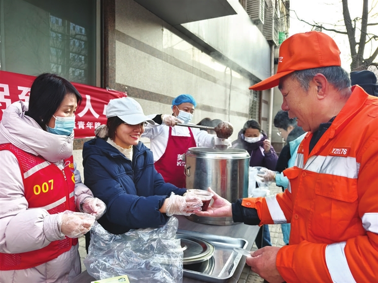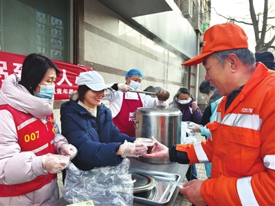志愿者们早早就开始筹备,确保每一碗腊八粥都用料扎实、暖心暖胃。清晨天微微亮,后厨已是热气升腾,经过数小时的慢火熬制,软糯香浓的腊八粥新鲜出锅。志愿者们将热气腾腾的腊八粥分装好,一一递到前来领取的居民手中。“这粥真地道,喝下去全身都暖和了!”刚拿到粥的王阿姨笑着说。社区工作人员还特意将热粥送到正在忙碌的环卫工人手中,感谢他们不畏严寒,默默守护着城市的整洁。接过热粥的环卫工人连连道谢,称这碗粥不仅暖了手,更暖了心。