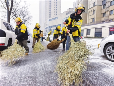 “一早看到雪飘下来,我就赶紧在群里通知大家,9时30分到中海社区门口集合,一起扫雪。”万柏林区美团西山站点站长高博说,骑手们都很支持,纷纷在群里响应:“稍等,很快到。”他们当中,有人已经开始跑单,送完手头的单后马上赶了过来。