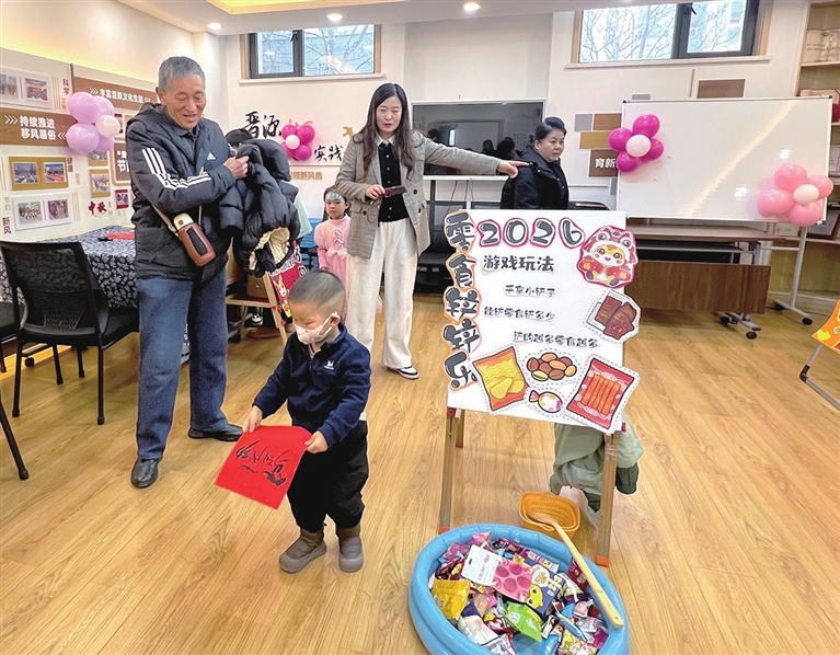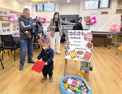 集市亮点纷呈,现场热闹非凡。非遗体验区里,面部彩绘师为孩子们绘上福字、生肖马等喜庆图案,童真笑脸相映成趣;扎染、拓印摊位前,居民在折布染色、铺纸刷墨间感受文化魅力。亲子欢乐区人气高涨,“电臀达人”“欢乐套圈”等趣味游戏让家长孩子默契互动、笑声不断;年宵花制作、魔术师表演与幸运抽奖轮番上演,持续点燃新春氛围。