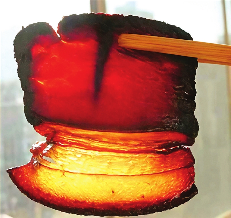 青酱肉的做法,核心便是将肉浸于酱油,挂起风干,再浸、再风干,如此反复数次。酱油也叫清酱、秋油,据说在山东部分地区,至今仍称酱油为“清酱”。《随园食单》特牲单有酱肉:“先微腌,用面酱酱之,或单用秋油拌郁,风干。”