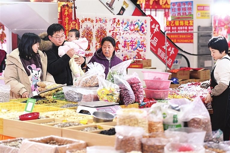 1月29日,尖草坪小商品批发市场内,前来购买糖果副食的市民络绎不绝。春节将至,糖果副食迎来销售高峰。 邓寅明 摄