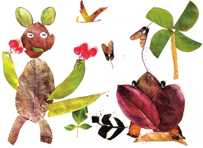 采红果 (树叶画) 后小河小学 一年五班 孙毅博 作