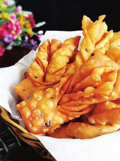 5.用素油炸成金黄色起泡即可。