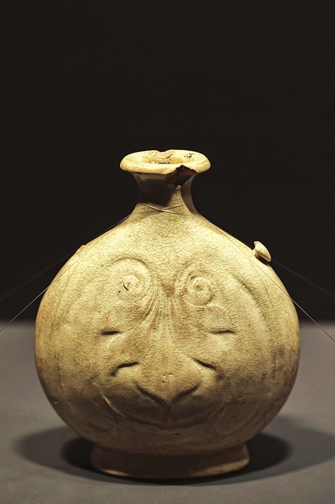 鸡冠壶也称马镫壶、皮囊壶,是契丹族特有的瓷器。早期鸡冠壶形似皮囊,古朴厚重,中晚期以后的鸡冠壶采用中原烧制技术,造型圆润,纹饰细腻。鸡冠壶形制的变化,有利于我们研究契丹族与汉族的文化交流。