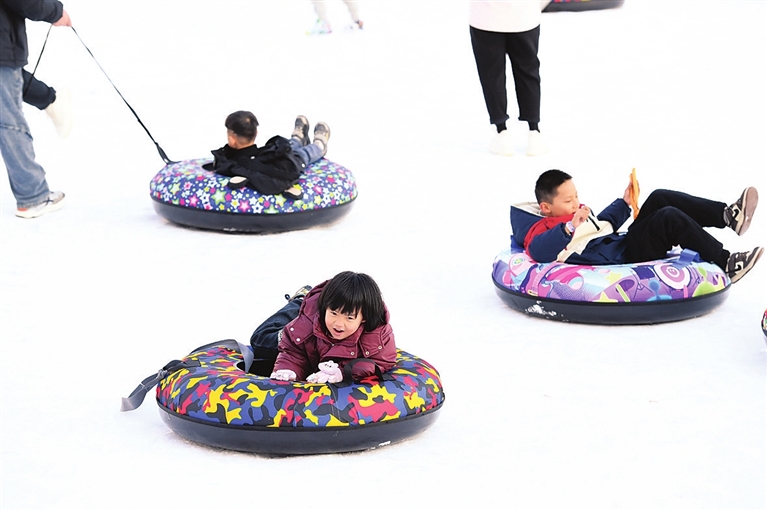 寒假来临,许多孩子们纷纷前往雪场,享受冰雪带来的乐趣。图为2月4日,省城东中环路一家冰雪乐园内,孩子们尽情玩耍。 邓寅明 摄