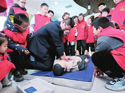 2月8日上午,小桔灯爱心联盟志愿者们在山西省防空防灾体验馆参观学习。图为讲解员为志愿者讲解急救知识。 殷雪鸢 摄