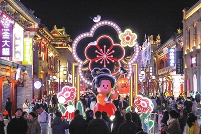冬日的钟楼街,依旧热闹非凡。街道两侧的店铺次第亮起灯光,暖光映照着穿梭其间的行人:有紧跟潮流、身着COS服装的年轻人;有与父母同行、手拎特色小吃的孩童;有在各色地标前拍照打卡的游客;也有三两好友相伴、享受难得休闲时光的学生。老字号与潮品牌比邻而居,不刻意划分年代边界,反倒让街区生出一种古今交错的独特美感。