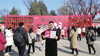 大年初四,30岁的湖北小伙尹鹏跟着女朋友走进动物园,去逛太原庙会。他在太原的一家广告公司从事设计工作已两年,此前都会返乡过年。今年由于手头的一份方案要得急,索性留在太原过年。女友是本地人,特意陪着他感受太原的年味。