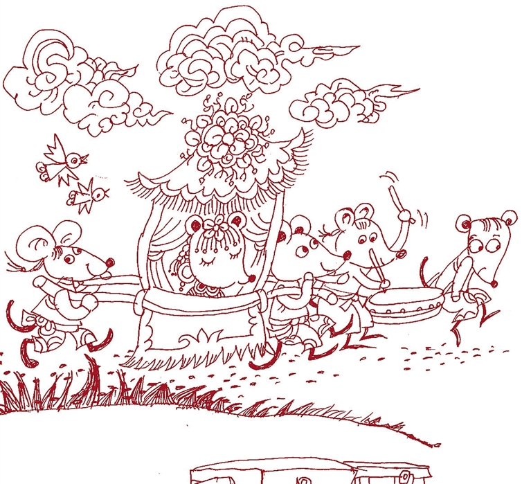 如果说以上这些说道,表达的都是对老鼠的厌恶之情,那“老鼠娶亲”,似乎就是一个很特殊的例外了。因为在十二生肖中,老鼠是唯一一个被民间百姓择日为其办喜事的动物。而且,这一习俗并不止于晋源一地,而是流传甚广。甚至,老鼠娶亲的年画、剪纸,还曾广泛流行。周作人先生曾写过一组《儿童杂事诗》,其中有一首《花纸》(在绍兴一带,将年画叫作“花纸”)就写道:“老鼠今朝也做亲,灯笼火把闹盈门。新娘照例红衣裤,翘起胡须十许根。”其热闹而有趣的画面,立现眼前。我小时候,曾一度喜欢上了“铰花花”(剪窗花),有一组六幅成套的“猫姑儿娶媳妇”,我就铰了好几年。直到有一年扫房时不小心,将压在炕席下的花花样子弄烂了才罢。