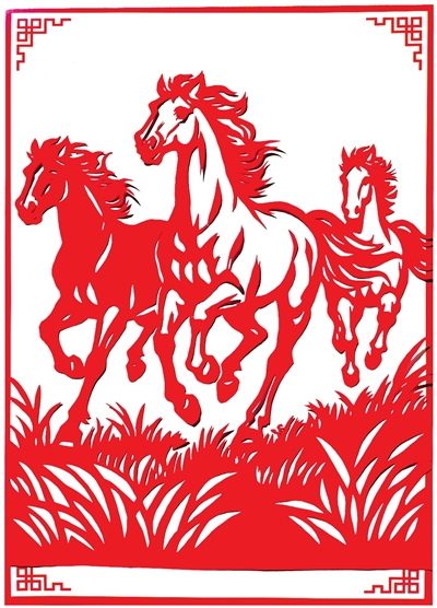 石小钦老人今年七十二岁,正逢本命年,她特意剪了一套《奔马》,发来作品的同时还配上了自己写的寄语:“开足马力,只争朝夕。”