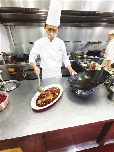 王艳文从事厨师职业已有20余年,绝大部分时间都给了厨房,很少陪伴家人,春节档期更要在岗位上守着。“大家对于春节期间团圆饭的重视程度不言而喻,任何一个小细节准备不到位,都有可能影响顾客们的用餐心情。”王艳文介绍,洗菜、切菜、煎炸,菜品的种类与数量都需要厨师们根据工作经验作好预判。整个春节,后厨团队都是“临战状态”。