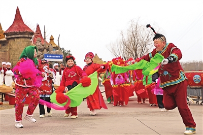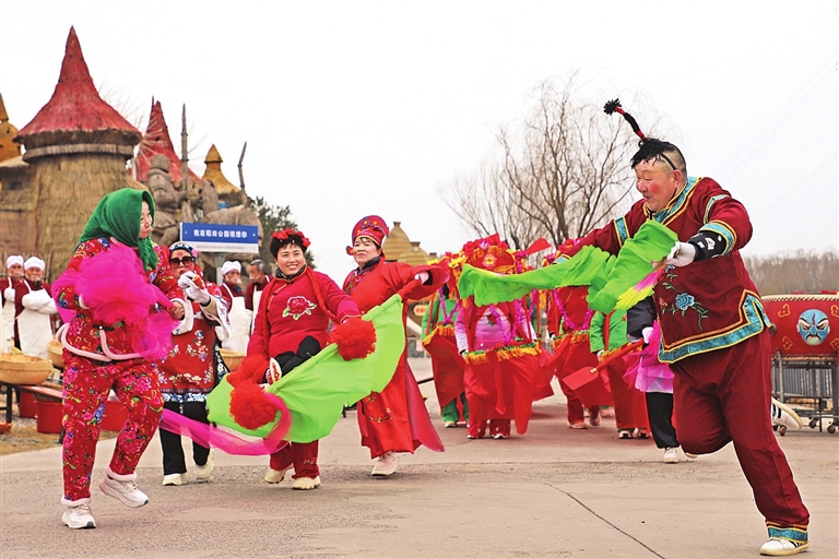 3月1日,正月十三,太原康培·稻田公园推出元宵喜乐会主题活动。民俗表演、扭秧歌、滚元宵等节目,营造出浓浓的节日氛围。 张昊宇 摄