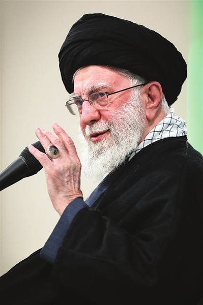 1989年6月,霍梅尼逝世。在伊朗专家会议的推举下,哈梅内伊接任最高领袖。他主张发展国防与核计划,并在中东多国扶持“抵抗阵线”,以扩大伊朗的地缘影响力。面对严厉的国际制裁与国内经济压力,他提出“抵抗型经济”战略,力求推动实现国家自给自足。