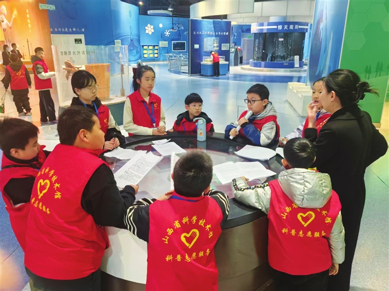 这是省科技馆“小小讲解员”志愿服务活动中的一幕。今年寒假,该馆从285名报名者中选拔了35名9至12岁的小学生,开启为期5天的沉浸式航天科普之旅,特别面向航天爱好者招募。