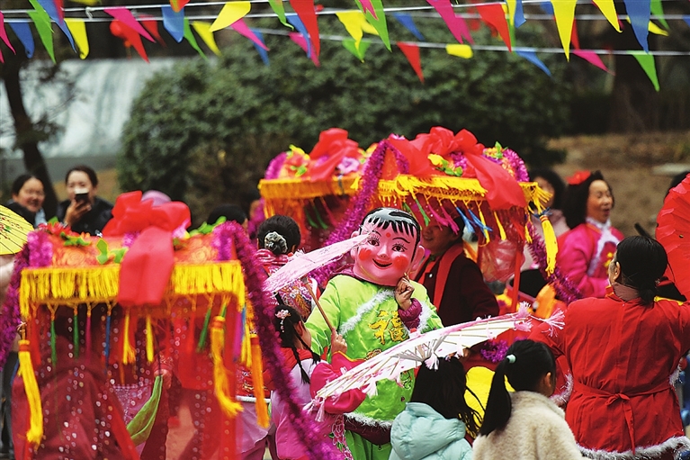 3月2日,杏花岭区红沟路社区,居民欢聚在一起,通过丰富的传统民俗活动共庆佳节,绘就一幅喜庆祥和、文明和谐的社区新春画卷。图为居民自编自演的民俗节目。 邓寅明 摄