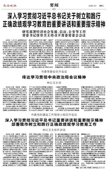 深入学习贯彻习近平总书记重要讲话和重要指示精神 部署我市树立和践行正确政绩观学习教育工作