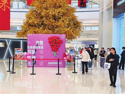 3月8日在铜锣湾、公元时代城、中正天街等商圈,很多女性逛街拍照,享受休闲时光,感受春日美好。有商场在户外大屏幕上打出了“妇女节快乐”“致敬闪闪发光的她”等祝福语,氛围感拉满。化妆品、女装、首饰等女性主打商品也推出满减、折扣、赠礼等促销活动,吸引了不少消费者驻足选购。