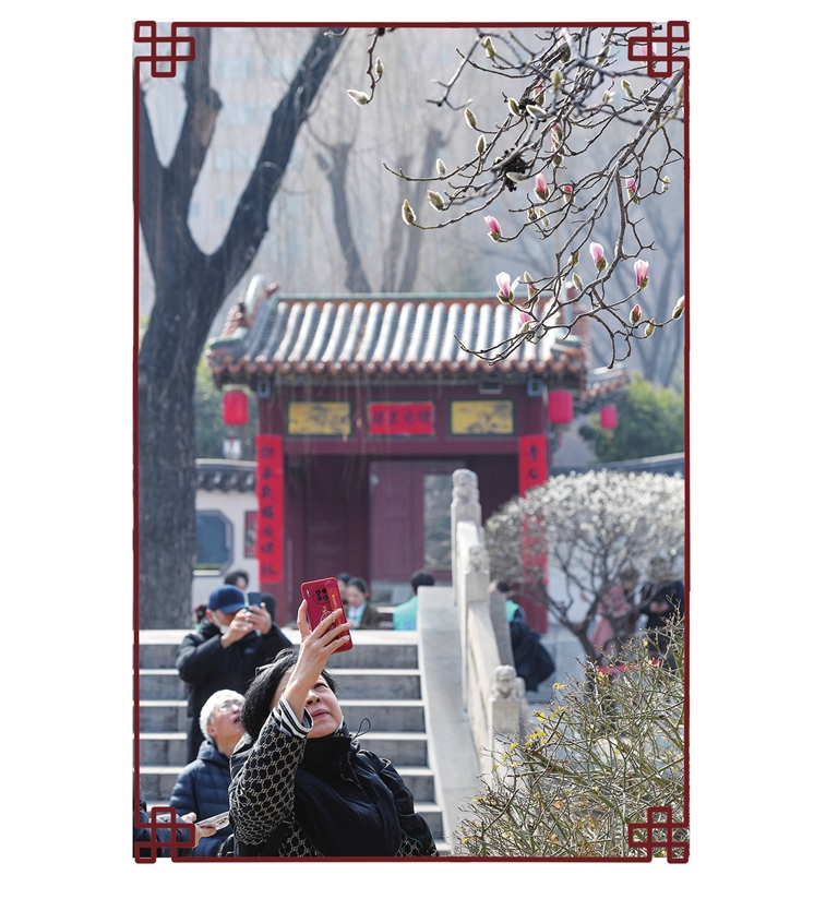 3月9日,碑林公园内,绽放的玉兰花吸引了众多游客。牛利敏 摄