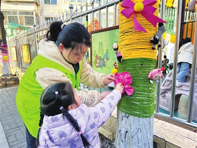 巧手装扮的树木焕然一新,成为小区里一道亮丽的风景线。此次活动,让孩子们在动手实践中感受劳动乐趣,进一步增强了他们的环保意识与社会责任感。同时,也有效搭建起关爱未成年人的平台,营造出人人爱绿、护绿、植绿的浓厚氛围。