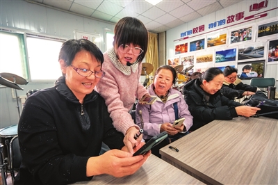 3月18日,太原青创老年大学王桂芳老师(左二)正在指导学员使用手机智能软件“豆包”。该老年大学开设零基础AI课程,帮助老年群体跨越数字鸿沟,更好地融入数字生活。 邓寅明 摄