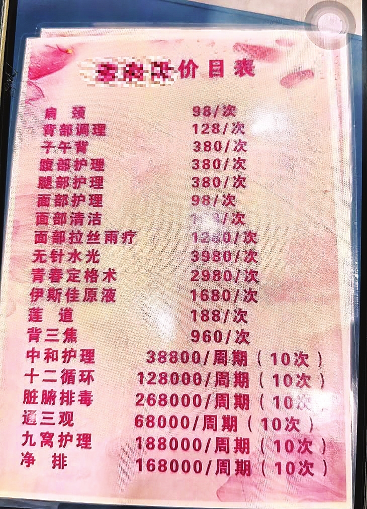 自此,李桦便成了这家健康养生馆的常客。店里的工作人员不但嘘寒问暖,还陪她唠家常,提供的“服务”项目也逐渐从按摩转向所谓的“升阳”“肠清”“淋巴排毒”等,收费越来越高。