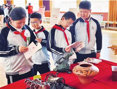 太原市博物馆优秀讲解员带来“锦绣太原历史文化”系列研学第一课,以趣味互动的形式引导同学们认识博物馆、走近晋阳历史,课堂氛围热烈,拉开研学课程序幕。随后,博物馆工作人员为学生发放专属研学手册,通过参观展板以及文物复制品、文创等,激发孩子们探索家乡历史文化的兴趣与热情。