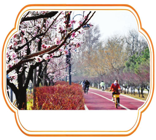 3月26日,春风和煦,滨河自行车道两旁桃花绽放,骑行爱好者边赏景边运动。 邓寅明 摄