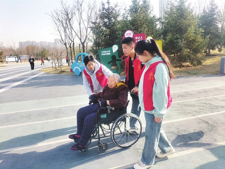 3月19日上午,阳光和煦。周利仙与志愿者们准时来到段奶奶家中。大家分工协作,有的搀扶老人缓慢下楼,有的负责搬抬轮椅。一路上,欢声笑语不断,到达迎新公园后,满眼的绿意让老人欣喜不已。在广场上,她兴致勃勃地观看了广场舞,脸上始终挂着灿烂的笑容。周利仙与志愿者们陪在身边,不时为老人介绍身边的新变化。段奶奶激动地拿出手机与远在外地的女儿视频连线,分享这份难得的喜悦。看到母亲脸上洋溢着满足的笑容,女儿在视频那头连连向网格员和志愿者们致谢。